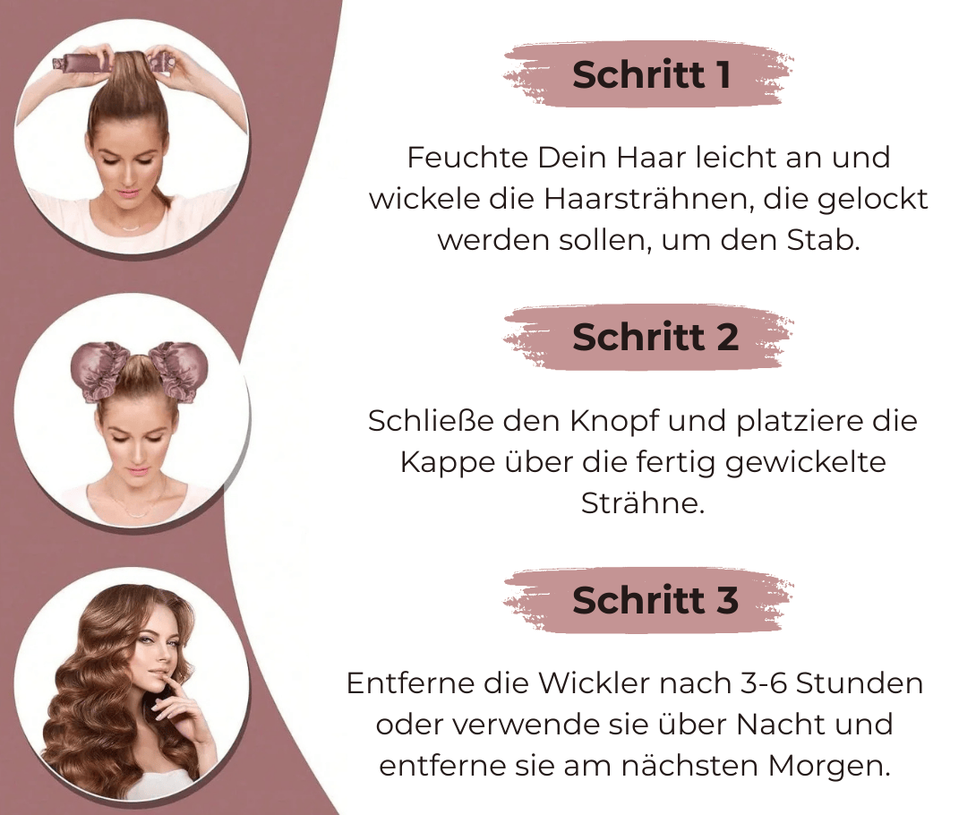 Noch nie waren schöne Locken so einfach und gleichzeitig so komfortabel im Tragegefühl. In 3 einfachen Schritten zu perfekt gelocktem Haar!